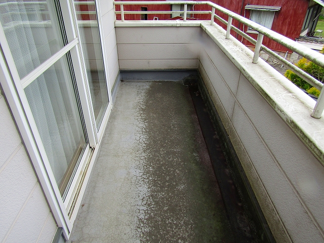 バルコニーは表面塗膜が劣化していました。防水工事をご提案いたしました。