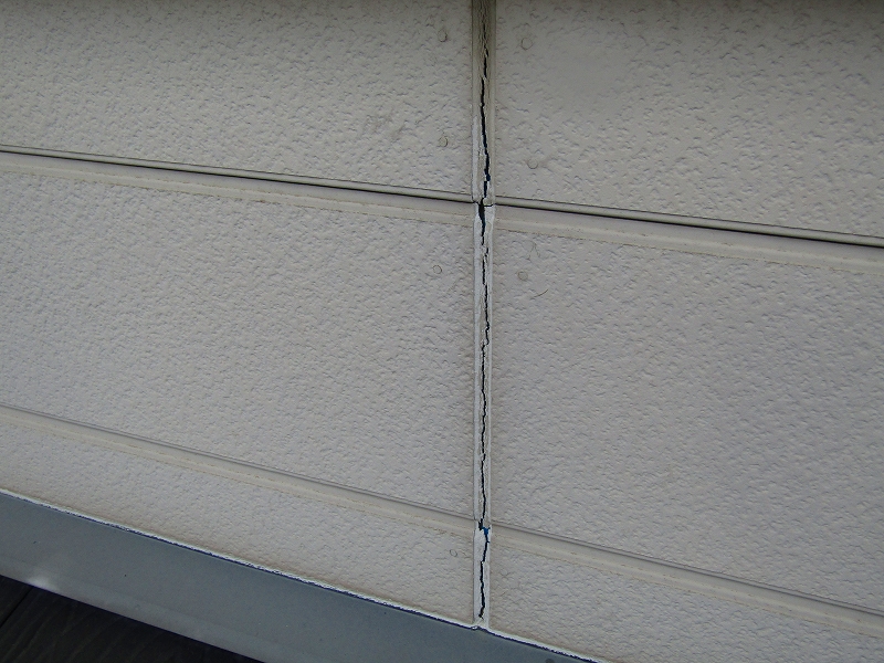 クラックが西面にとくに多く発生していました。目地が割れ、それによってサイディングが割れてしまっています。反りを起こしてしまうのでコーキングの打ち替えをご提案いたしました。