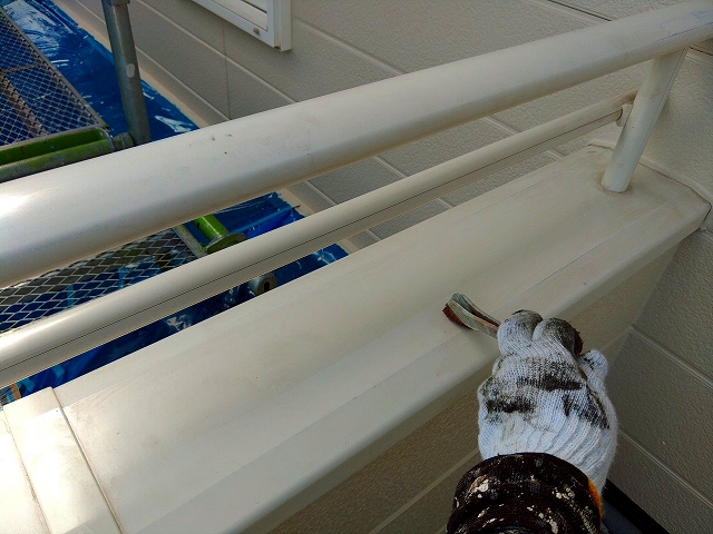 - バルコニーの手摺はアルミなので、下塗り材はアルミが密着するミッチャクロンを使用しました。