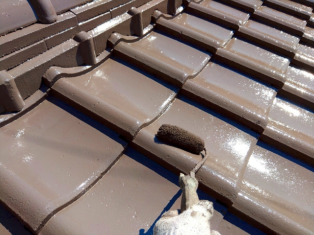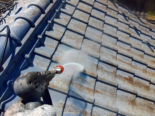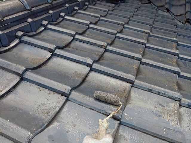 倉敷市屋根塗装工事 フッ素で苔が生えにくい