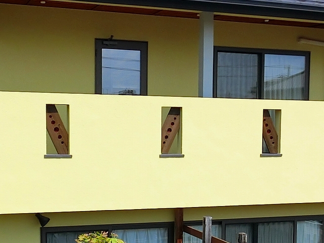- バルコニーからのぞく飾り木は木専用のガードラックアクアで塗装しました。