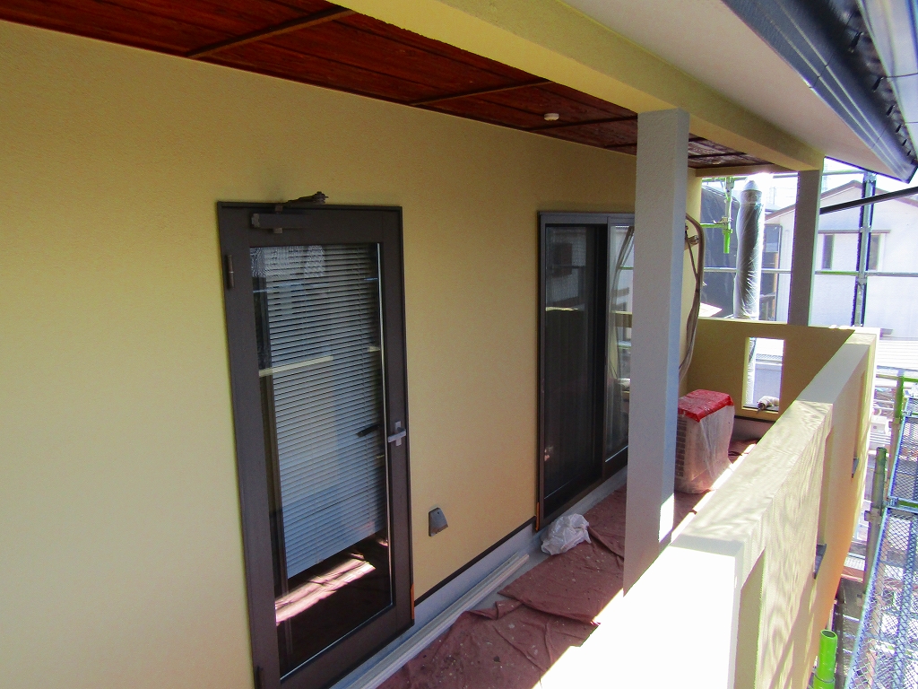 - 玄関回りの塗装完成です。艶消しの塗装は高級感があり優しい雰囲気になります。