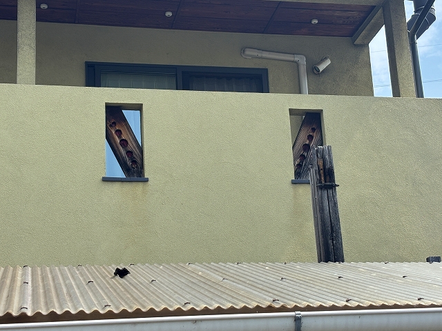 - 施工前のバルコニーの飾り木部です。木は塗装をしていないと腐ってシロアリが住みついてしまうこともあります。
