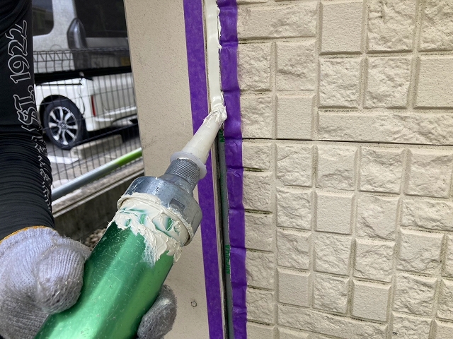 - コーキング打ち替えの様子です。撤去して打ち替えることで長持ちします。