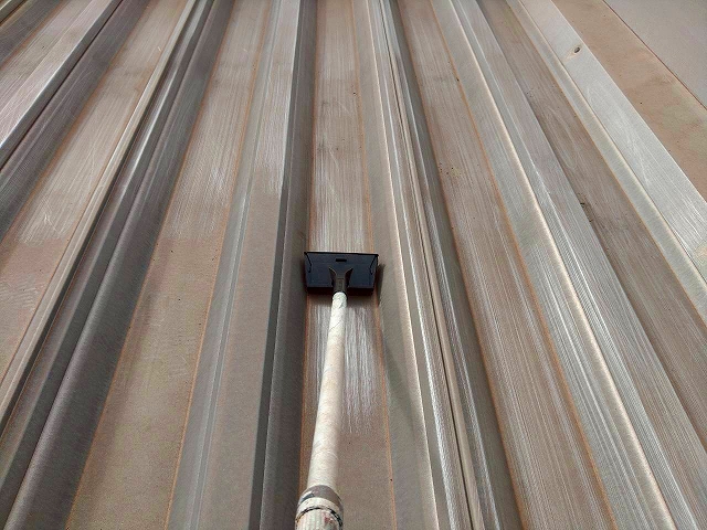 屋根には大きな劣化症状は見られませんでしたが、折板屋根は雨水が流れる部分からサビていきます。塗装が必要になる時期は来ますので足場がかかっているときの塗装をおすすめいたしました。
