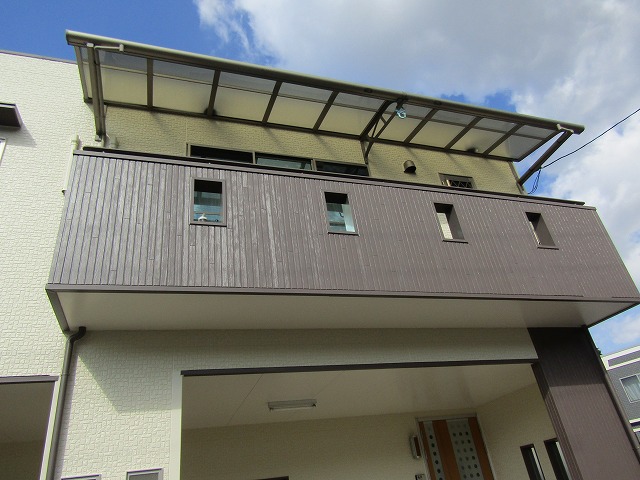 - 外壁は濃いブラウンの部分の色褪せが目立っていました。白い部分は外壁の凹凸に汚れが付着していました。