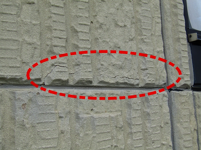 - 外壁のひび割れがありました。ALCパネルは小さなクラックからも雨漏りするのでVカット補修をします。