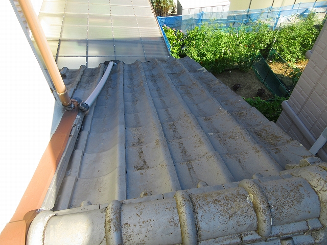 - 屋根はセメント瓦の箇所を塗装しました。塗装前は苔が多くありました。