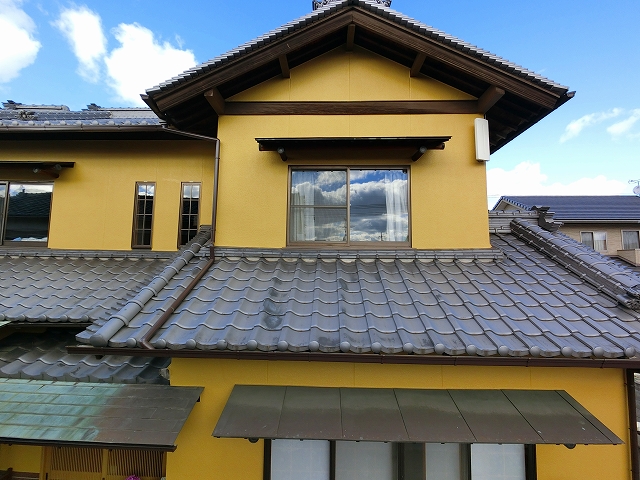 屋根は雨漏りを起こしていました。修繕工事を行い、塗装工事をさせていただきました。外壁はモルタルで屋根は本宅は陶器瓦で離れはセメント瓦でした。屋根はプレミアムルーフ塗装しました。