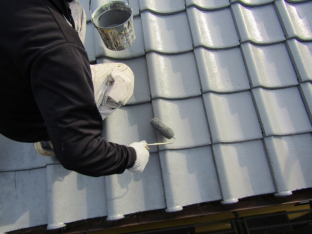 - 屋根の塗装工事をしています。セメント瓦は塗装が必要な瓦になります。