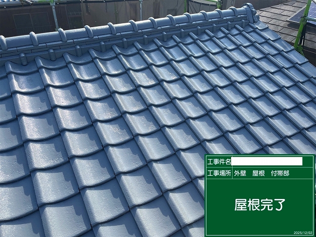 - 屋根の塗装完成です。コケがたくさん生えていましたが綺麗に除去して美しく仕上がりました。
