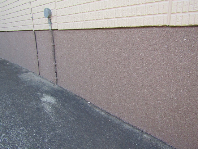 - 基礎は多彩色の吹き付けをしました。基礎の塗装にこだわると1ランク上の仕上がりになります。