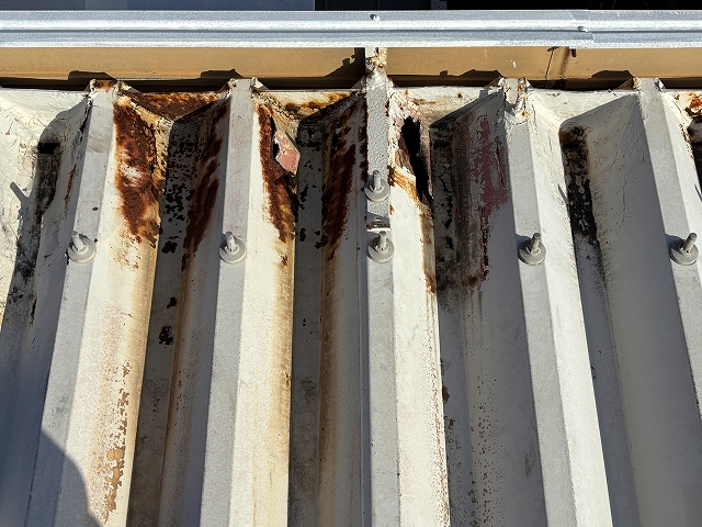 - 折半屋根は錆びがかなり出ていて穴が空いていました。カバー工法工事で修繕します。