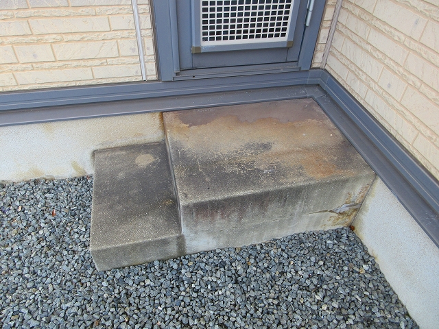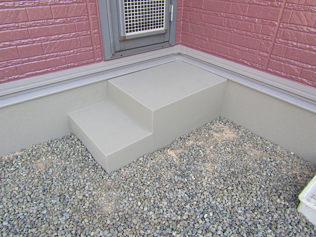 - 勝手口の踏み台はコンクリートです。塗装し、水分が入りにくいようにします。