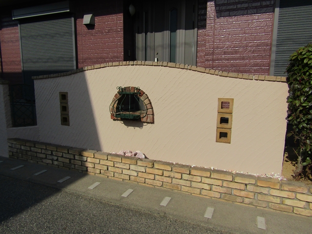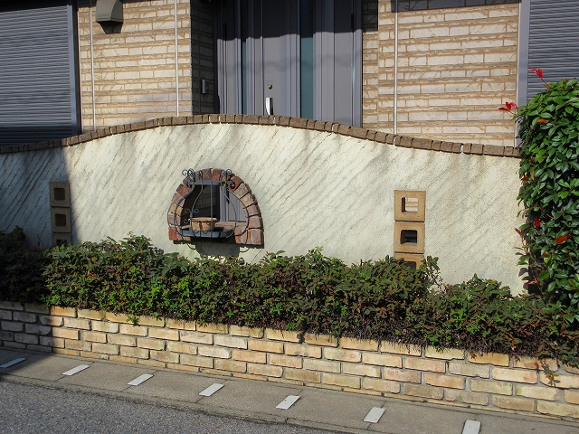 - 塀の塗装完成です。鉄部はサビ止めを塗ってグリーンに塗装しています。外壁ともよく合っています。