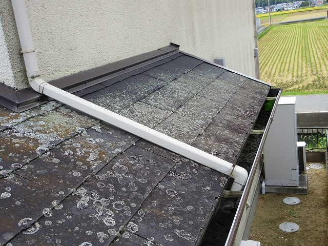 - 塗装前の屋根です。コケが多く発生していました。南面はスレートに反りがありました。