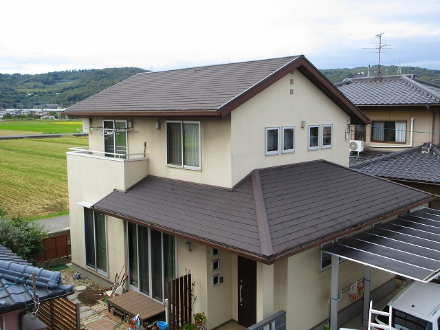 - 屋根の塗装の完成です。高圧洗浄と金属ブラシで徹底的に除去して塗装します。