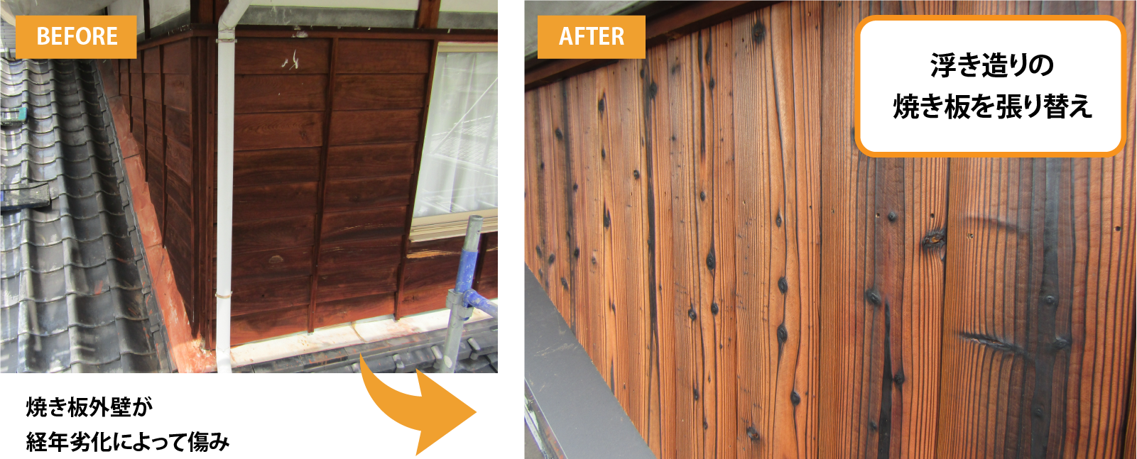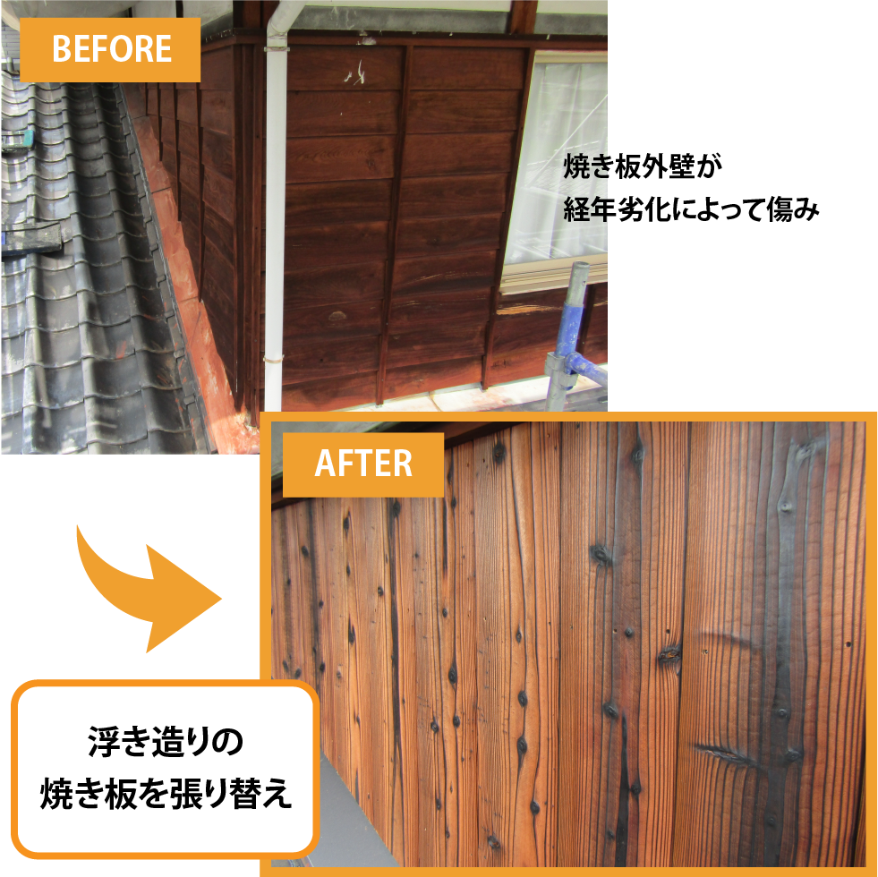 焼き板の腐敗や剥がれが進行している場合は、一から張り替えることも可能です。